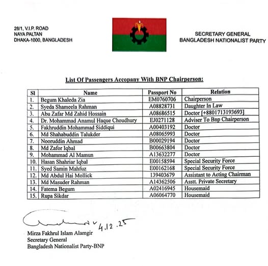 খালেদা জিয়ার সঙ্গে লন্ডনে যাচ্ছেন যারা