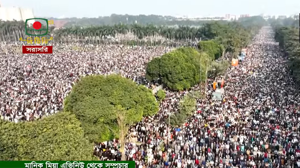 জাতীয় সংসদ ভবনের ভেতরের মাঠ, বাইরের অংশ, মানিক মিয়া অ্যাভিনিউ ও আশপাশের এলাকাজুড়ে লাখ লাখ মানুষ জানাজায় অংশ নেন। নির্ধারিত স্থানে জায়গা না পেয়ে হাজার হাজার মানুষ বিভিন্ন সড়কে দাঁড়িয়ে জানাজার নামাজ আদায় করেন।