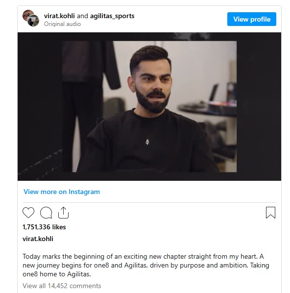এদিকে বিরাটের নিজের তৈরি জনপ্রিয় ব্র্যান্ড ওয়ান-৮ এর পণ্যও বিক্রি হবে স্পোর্টসওয়্যার স্টার্টআপ অ্যাজিলিটাস স্পোর্টসের বাণিজ্যিক কৌশলের মাধ্যমে। ফলে সাধারণ মানুষের কাছে আরও সহজে পৌঁছবে ওয়ান-৮ এর পোশাক ও অ্যাক্সেসরিজ।
